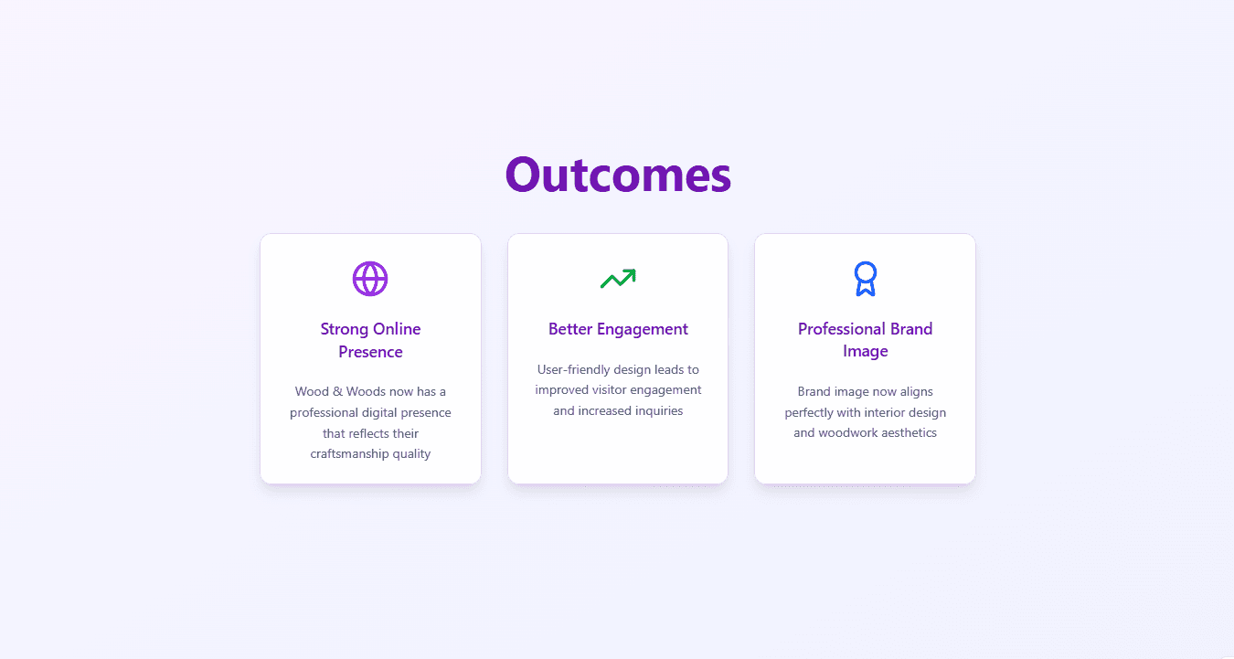 Wood & Woods is a premium interior decorators and woodworks company known for its quality craftsmanship, but it lacked an effective online presence to attract new customers. Potential clients searching online were unable to explore their services, portfolio, or credibility, limiting business growth opportunities.