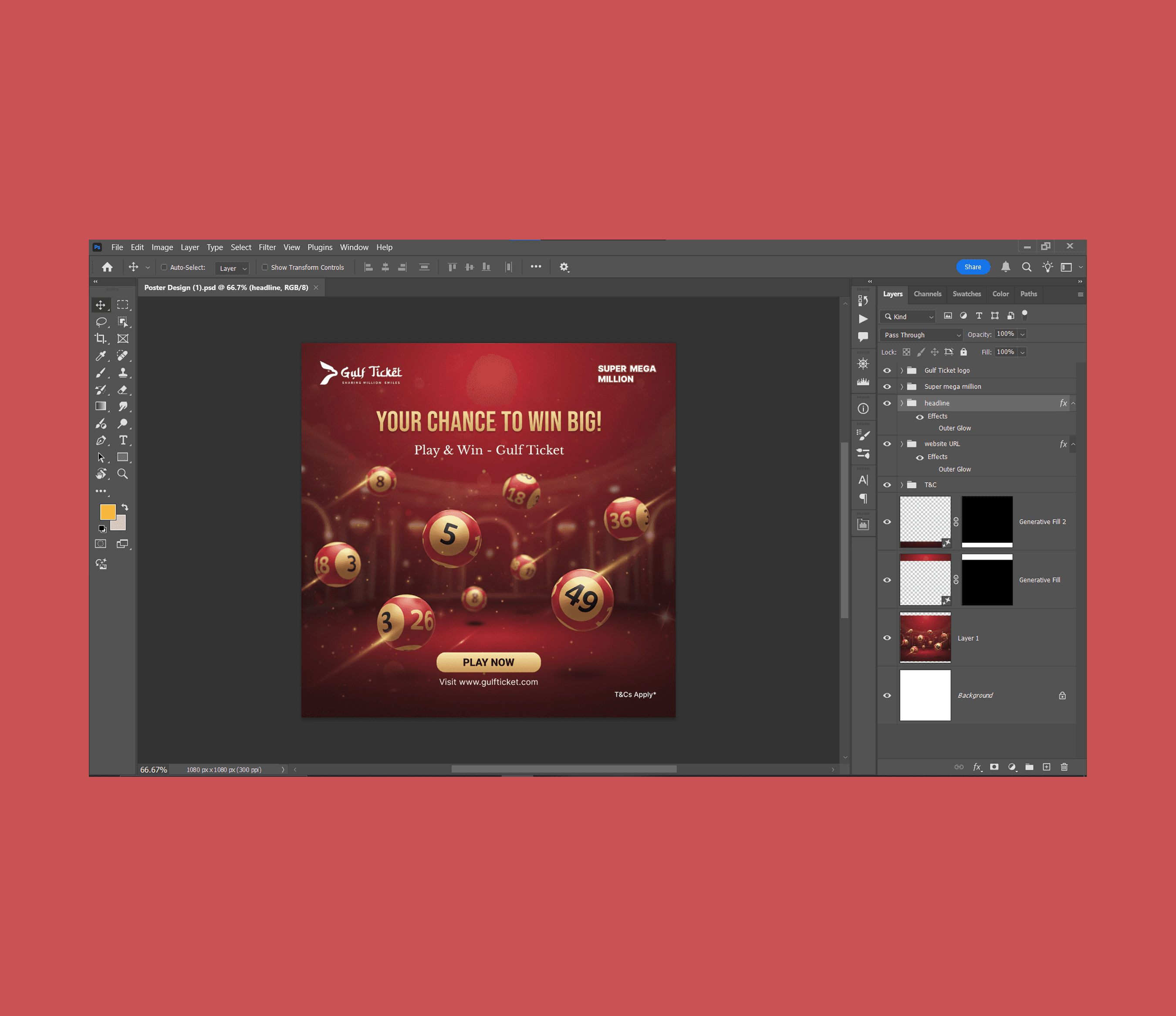 Structured the poster with a clear hierarchy: main headline, sub-text, visual lotto balls, and a strong Play Now CTA.